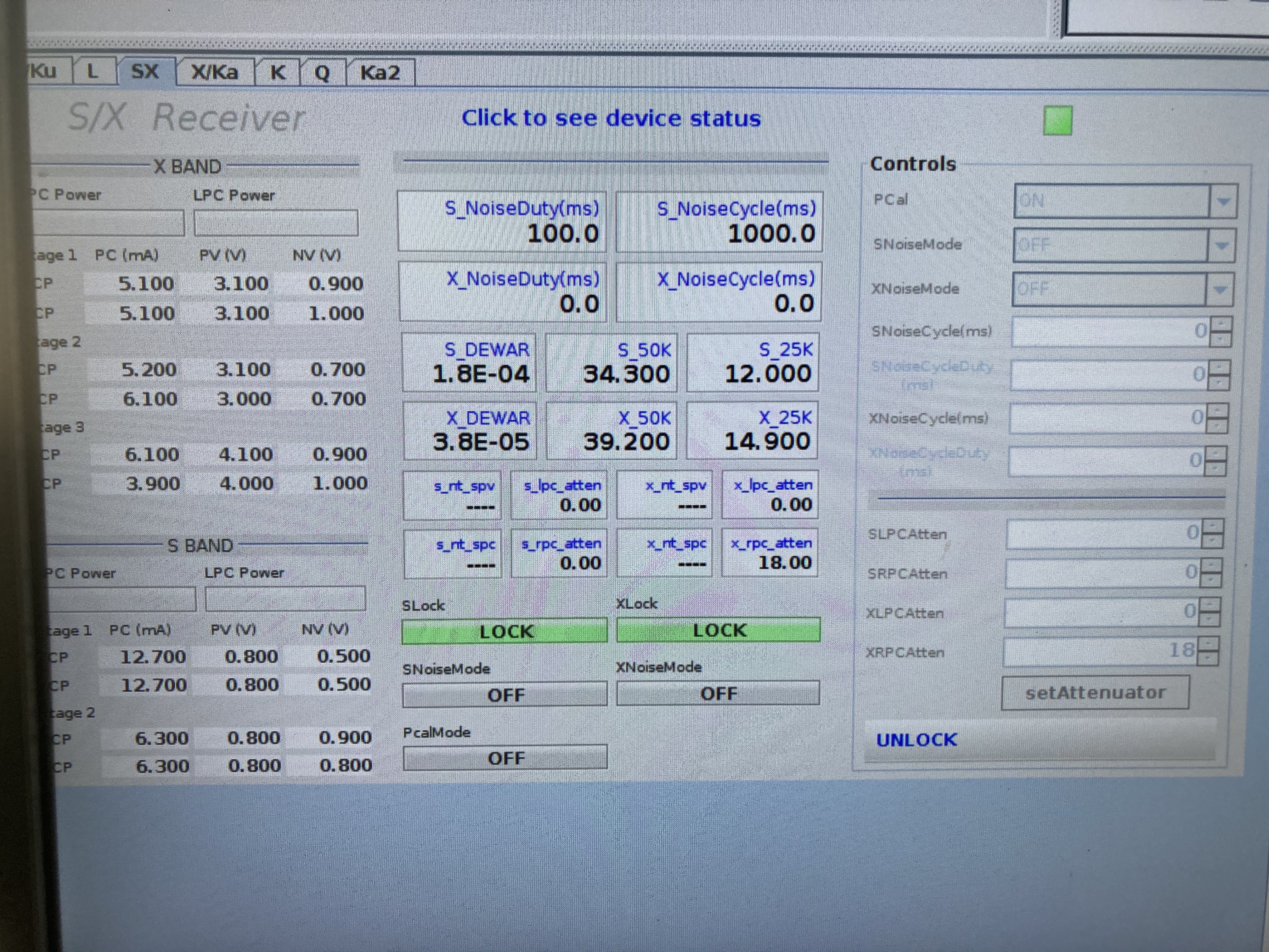 下图为S/X接收机状态: