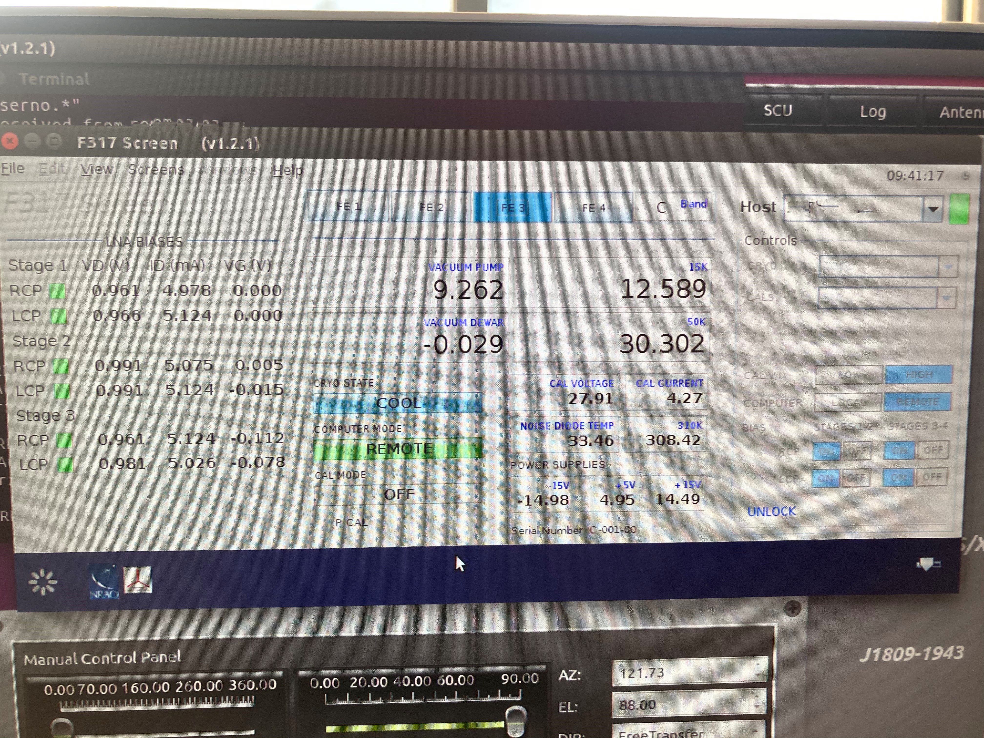 在图中分别表示L、S、X、K、Ka、Q,其中C和Ku在上位机上也可以查看。需要查看的关键性数值是冷头的温度。
