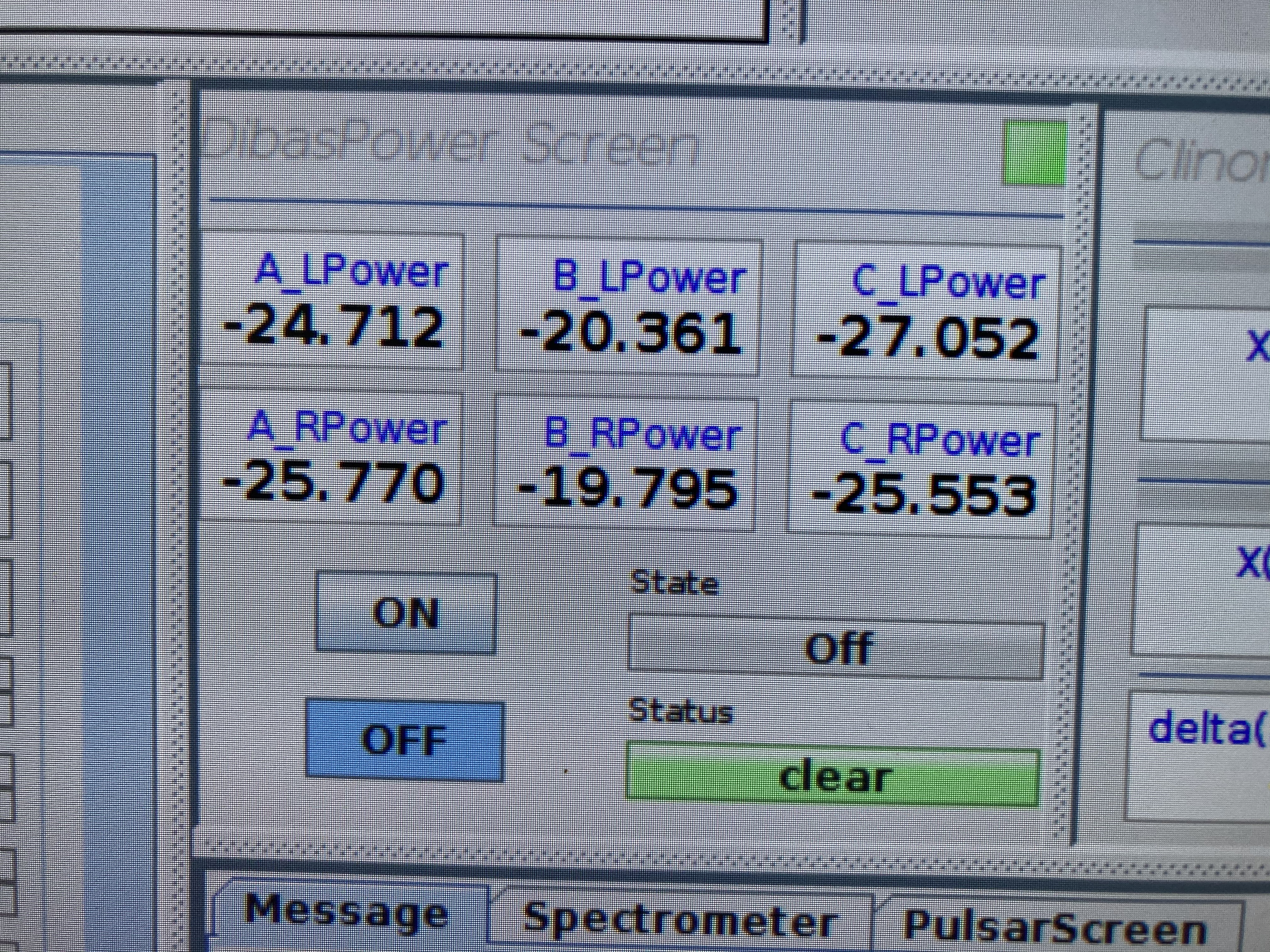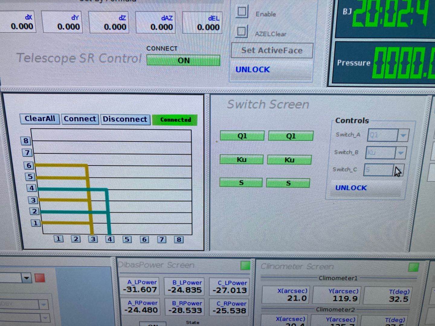 在观测开始后天线指向目标时,调节DibasPower(增益),一般谱线观测bankA、bnakB的增益都在-20dB,而脉冲星的观测bankA、bankB的增益分别为-25dB和-20dB。(其他观测的增益调节后续补充)