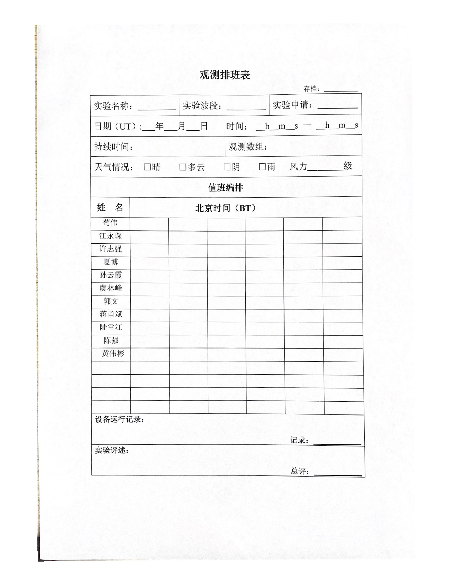 每次值班许填写相关表格