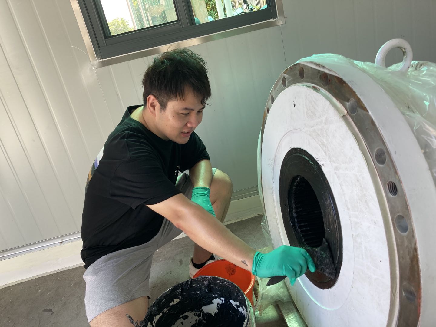 第二步:需要在电机减速器的内花键均匀涂满二硫化钼锂基润滑脂,防止水汽对花键的锈蚀。